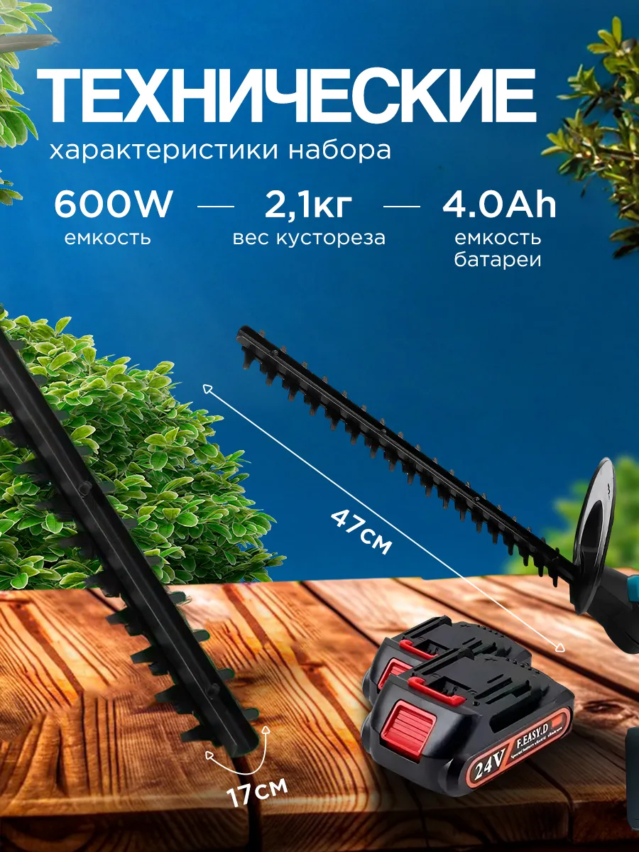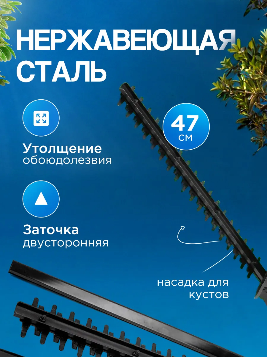Представляем вашему вниманию кусторез, который станет незаменимым помощником на даче и в саду. Этот эффективный электроинструмент идеально подходит для стрижки кустарников и формирования живой изгороди. Удобный дизайн и легкость в использовании делают его отличным выбором как для опытных садоводов, так и для начинающих.